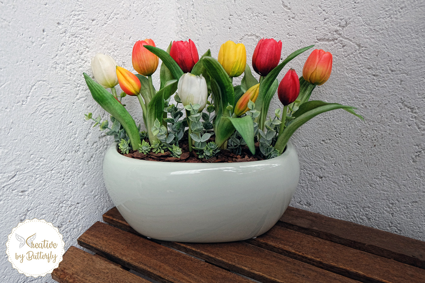 Prémium mintmary élethű tulipános asztaldísz 14 szálas