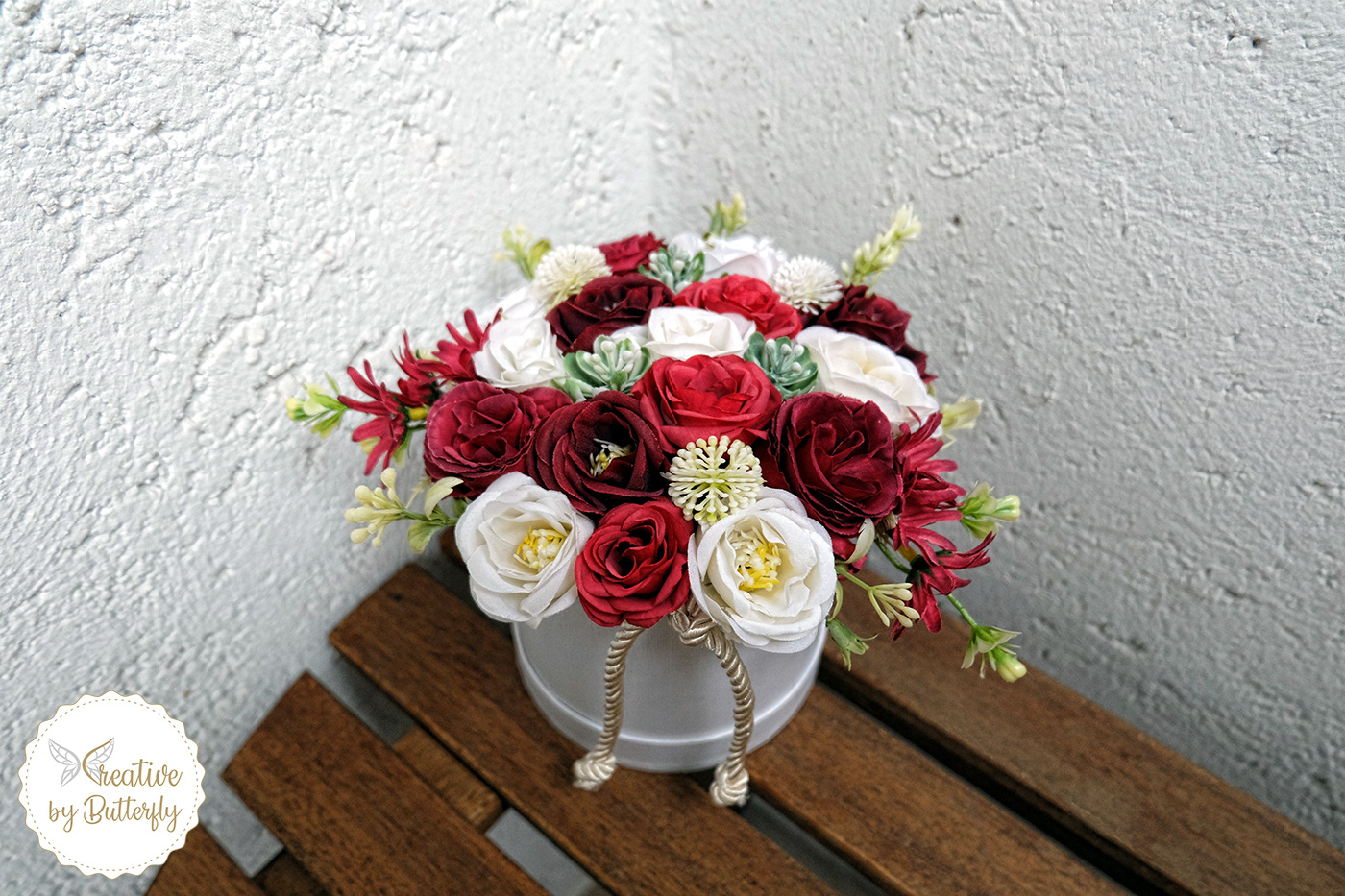 Vintage burgundy selyemvirágos asztaldísz 2.
