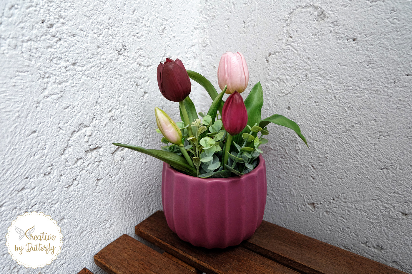 Purplemary élethű tulipános asztaldísz 4 szálas